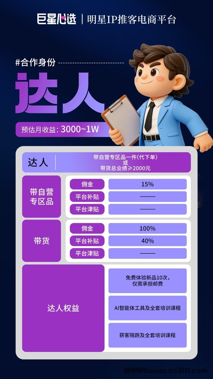 ① 身份跃迁:升级为平台“推荐达人”,加入专属“银河计划”事业系统,享受平台全方位扶持;
