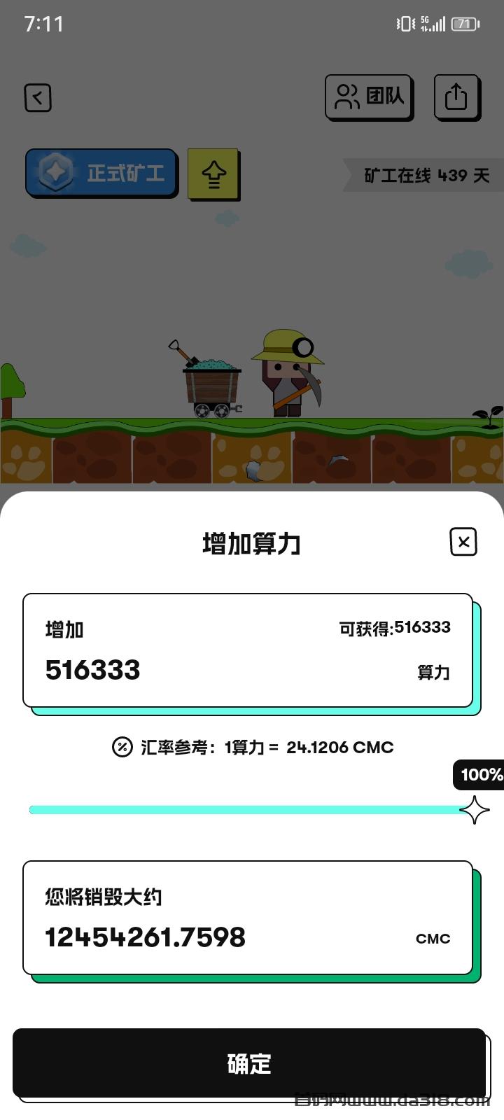 然后如果想大量获得算力 可以通过购买cmc销毁获得算力 如果不投资也可推广一代20% 二代5%