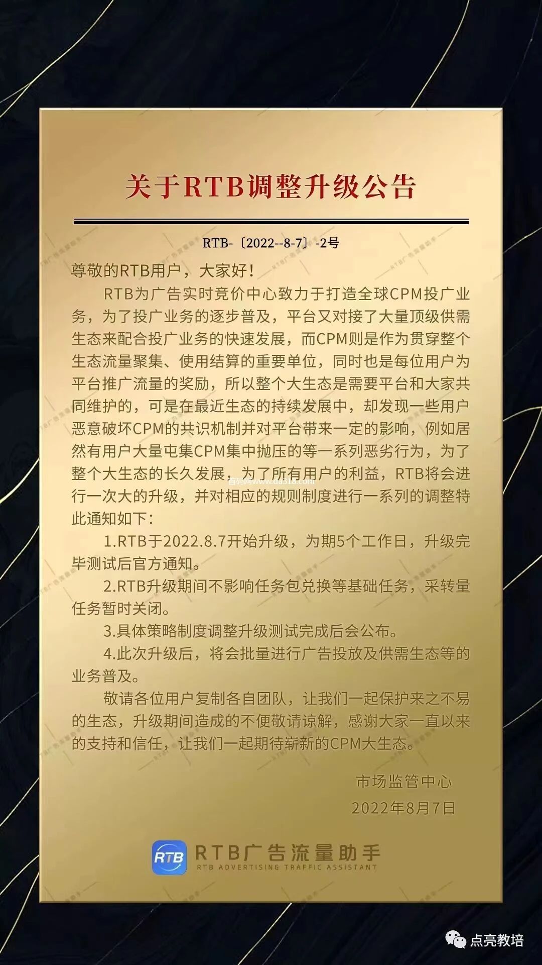 点评:点亮刚刚经过5个工作日的RTB更新,今天属于开盘第一天,政策有所改动。老会员在RTB(交易所)更新前买的CMP系统自动转换成亮点。打击了一部分在屯币投机份子。