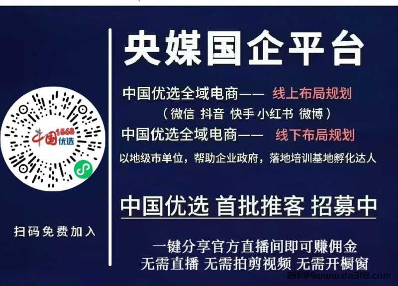 风口来了,选择比努力更重要。市面上推客平台很多,但 「中国优选」 是独一无二的存在!