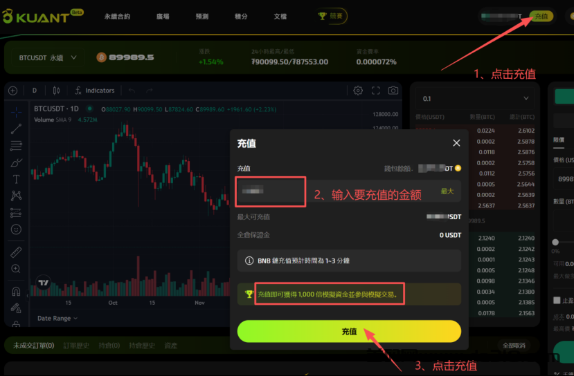 注意:如果输入邮箱提交后提示错误信息请首先将钱包切换到币安智能公链 BINANCE SMART CHAIN!关于KUANT 是个AI驱动的去中心化永续合约交易所 融合高频性能 AI 智能与游戏化机制!