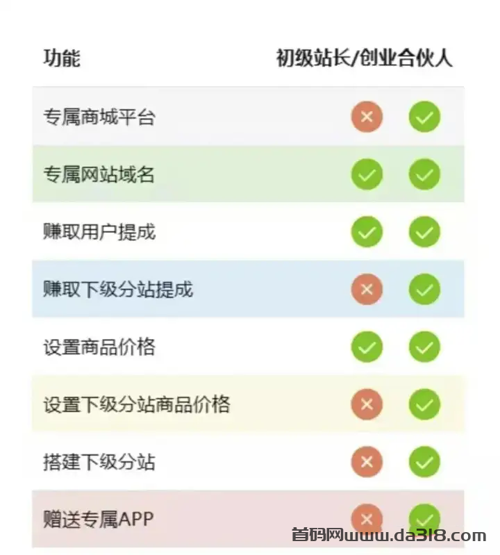 拥有平台最高权限,可以无限开通合伙人,为他人复制虚拟资源网站。